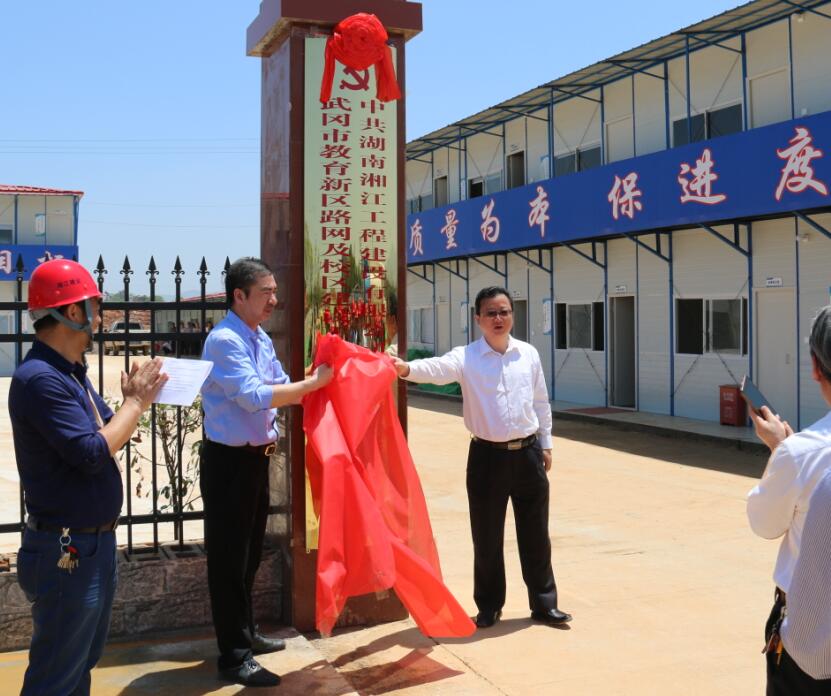 2018年4月18日上午,湘江公司武岡市教新區(qū)路網(wǎng)及校區(qū)建設(shè)工程項(xiàng)目黨支部揭牌儀式在項(xiàng)目部隆重舉行,副局長(zhǎng)吳宏斌、局黨組成員、副局長(zhǎng)王曉敏、局人事處處長(zhǎng)胡世明、局直機(jī)關(guān)黨委專職副書記劉雄以及局調(diào)研組和公司領(lǐng)導(dǎo)應(yīng)邀出席,項(xiàng)目部全體員工參加儀式。
