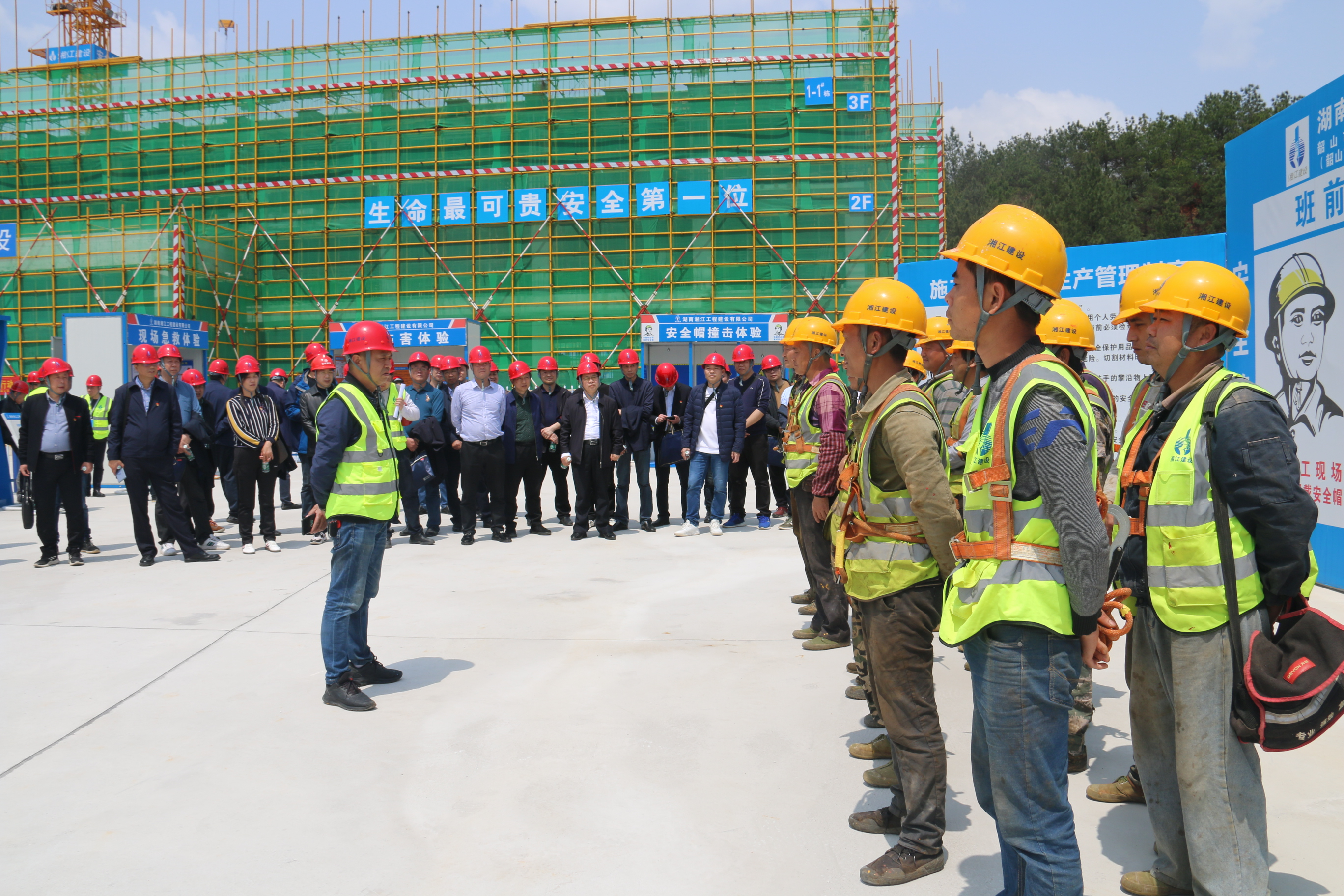 4月7日,湘江公司韶山市產(chǎn)教融合職業(yè)教育園項(xiàng)目安全質(zhì)量文明施工現(xiàn)場(chǎng)觀摩交流會(huì)在韶山市項(xiàng)目工地舉辦。院黨委委員、副院長(zhǎng)全鐵軍、一級(jí)巡視員吳宏斌、院屬各單位分管安全工作的領(lǐng)導(dǎo)、安全科長(zhǎng)及院安全生產(chǎn)管理室全體人員、湘江公司領(lǐng)導(dǎo)及項(xiàng)目部負(fù)責(zé)施工生產(chǎn)及安全質(zhì)量管理人員60余人參加了此次活動(dòng)。